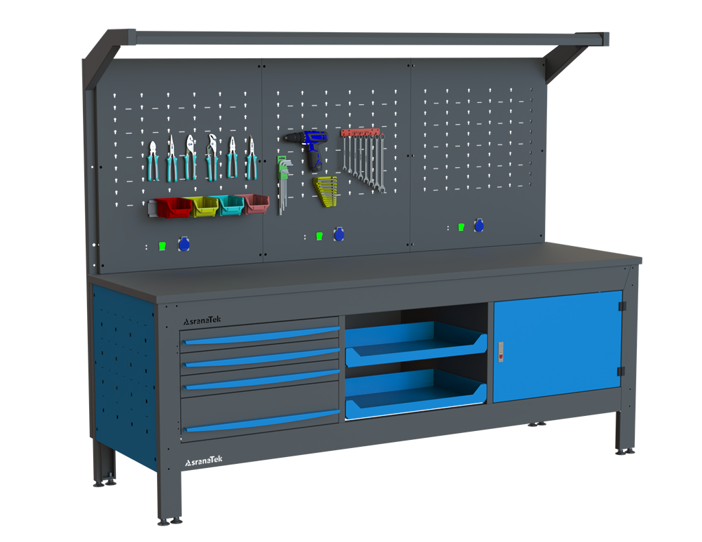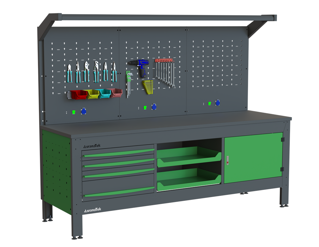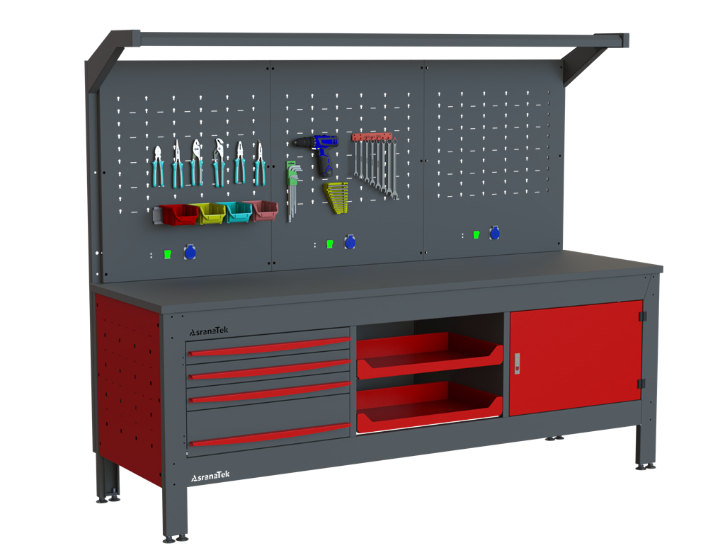 • سطح عمل من صاج مجلفن عالي الجودة وجزء داخلي من الخشب الأحمر